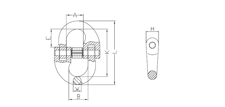 | ITEM NO. | WEIGHT (kg) | WLL (T) | B.L (T) | A | B | W | K | H | L |