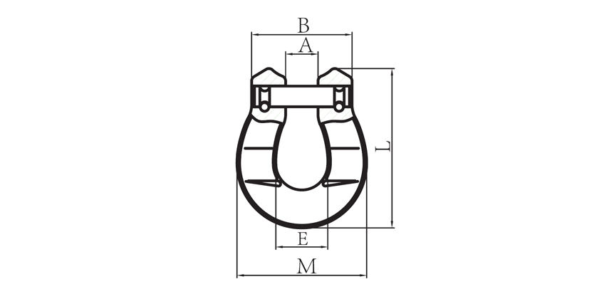 | ITEM CODE | WEIGHT (KG) | WLL (T) | B.L (T) | A ±1 | B ±2 | E ±1.5 | M ±2 | L ±2 |