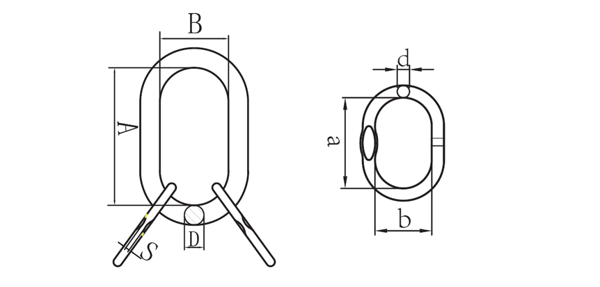 | ITEM No. | WEIGHT | CHAIN | 3 OR 4 LEG WLL 0-45° | WLL ROPE | A | B | D | a | b | d | s |